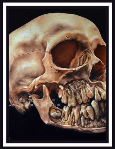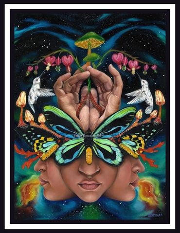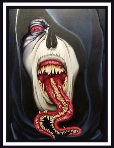 NJ based Puerto Rican artist Tania Pomales speacializes in dark and surreal works created primarily in oils. As a nod to her colorful and bold heritage, Pomales incorporates bright color palettes into her art in juxtaposition with darker motifs, such as skulls and human anatomical references, to explore themes of life and death and the cyclical nature of the human experience. The importance of mental health and deep self reflection are also fundamental themes in her work.